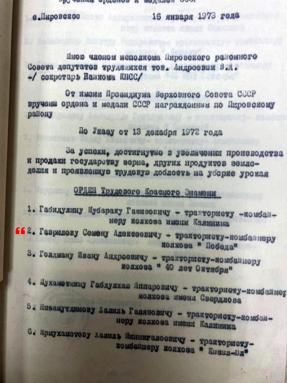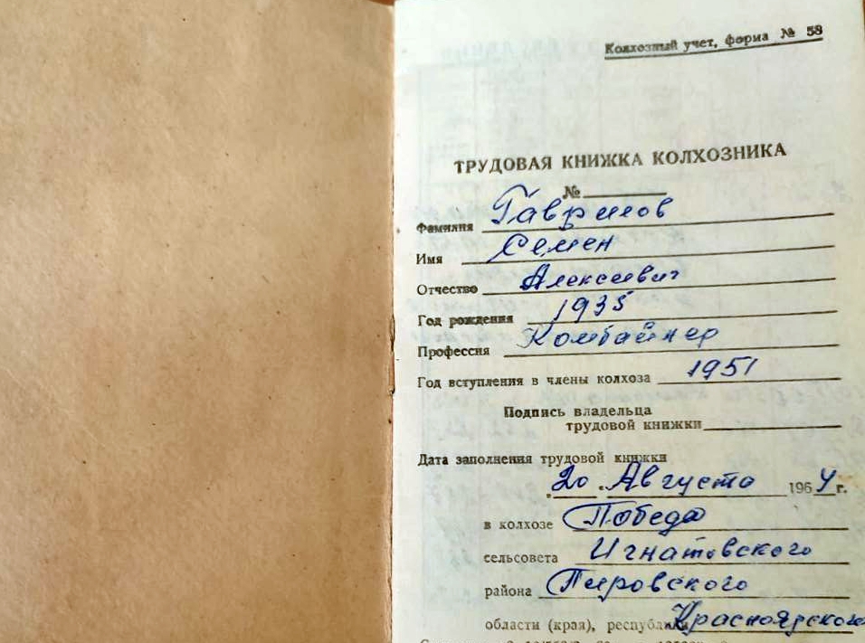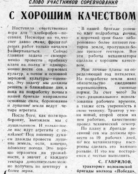 Тракторист-комбайнер Волоковской бригады колхоза «Победа» (1951-1980).