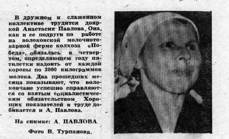 Передовая доярка Волоковской бригады колхоза «Победа».