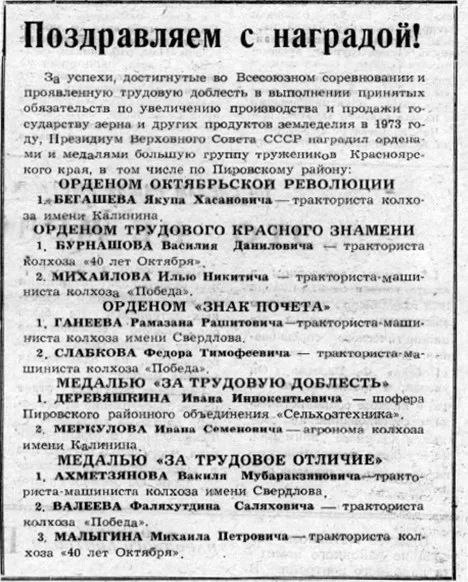 За достигнутые успехи в работе был занесён в районную Книгу Почёта (1971).